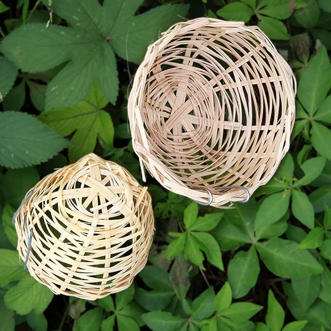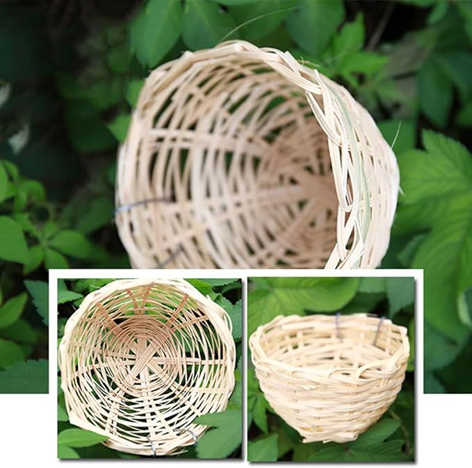 Nid d’oiseau avec crochet en métal Cage à oiseaux écologique en bambou tissé à la main